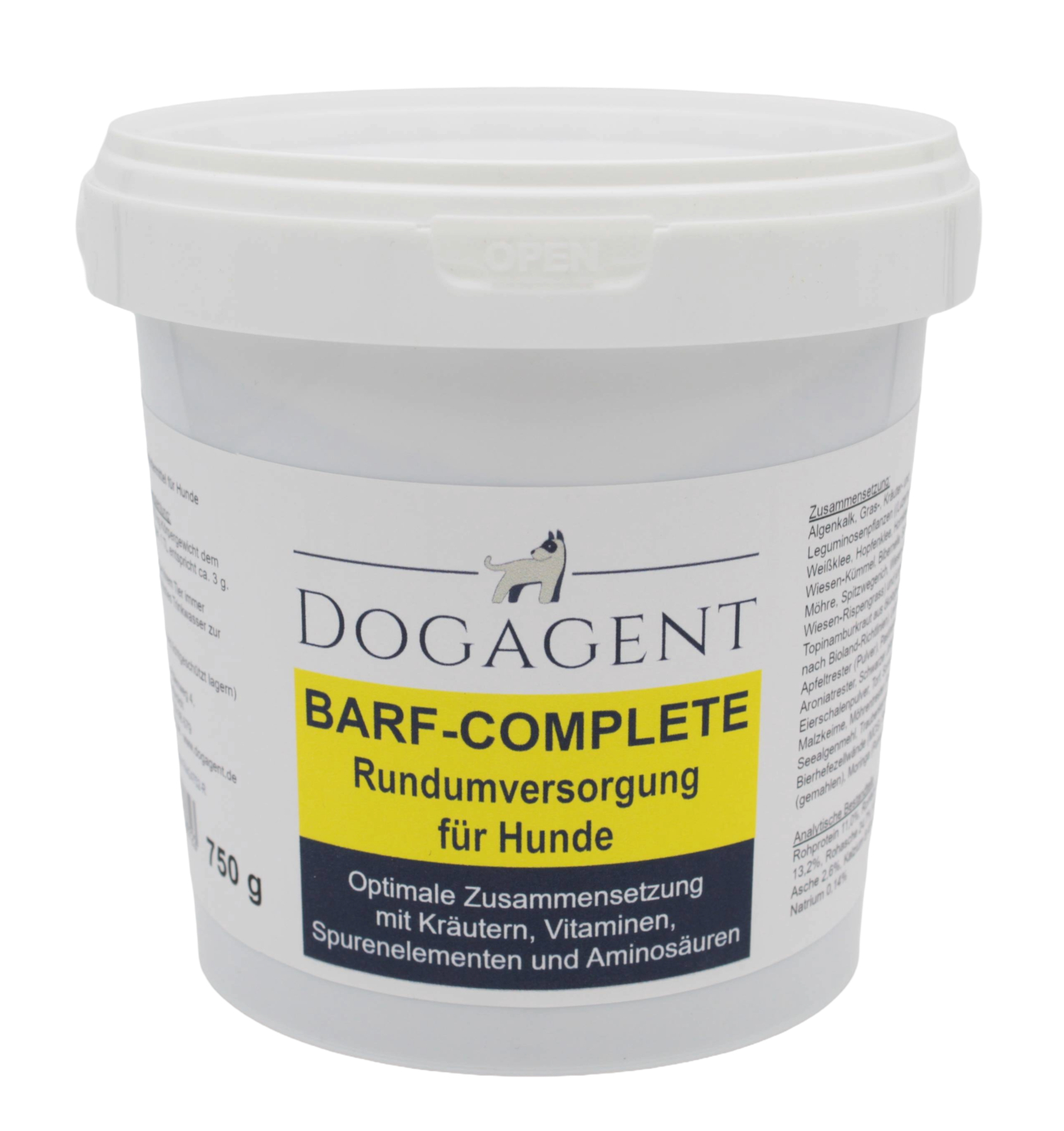 Algenkalk, Gras-, Kräuter- und Leguminosenpflanzen ((Luzerne, Rotklee, Weißklee, Hopfenklee, Hornklee, Esparsette, Wiesen-Kümmel, Bibernelle, Schafgarbe, Wilde Möhre, Spitzwegerich, Wiesen-Lieschgras, Wiesen-Rispengrass) und jungem Topinamburkraut aus ökologischem Landbau nach Bioland-Richtlinien), Leinsamen, Apfeltrester (Pulver), Pastinake (gemahlen), Aroniatrester, Schwarzer Johannisbeertrester, Eierschalenpulver, Torf, Sonnenblumenkuchen, Malzkeime, Möhrentrester (Pulver), Bierhefe, Seealgenmehl, Traubenkernmehl, Bierhefezellwände (MOS), Sellerieknolle (gemahlen), Moringa (Pulver)