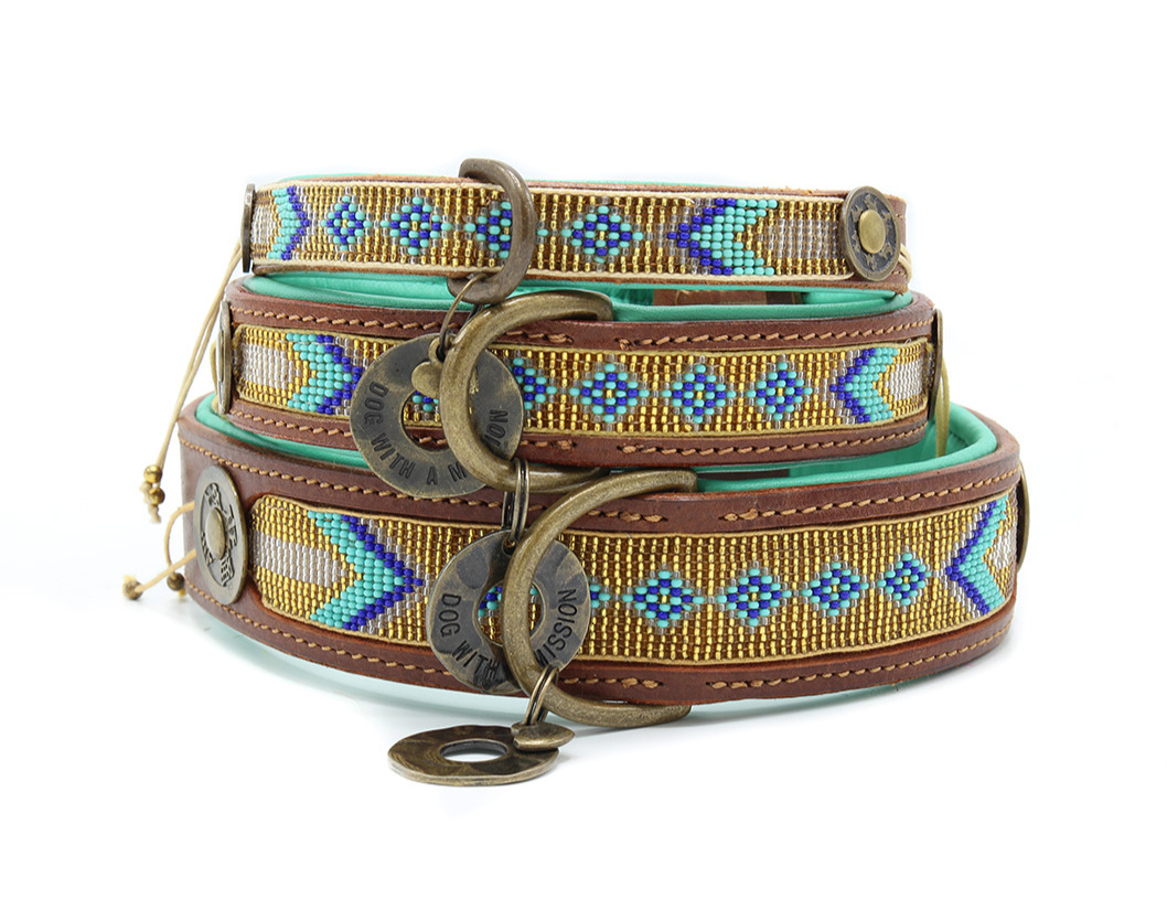 Auf der Innenseite ist das Halsband mit DWAM türkisfarbenem Softleder veredelt.