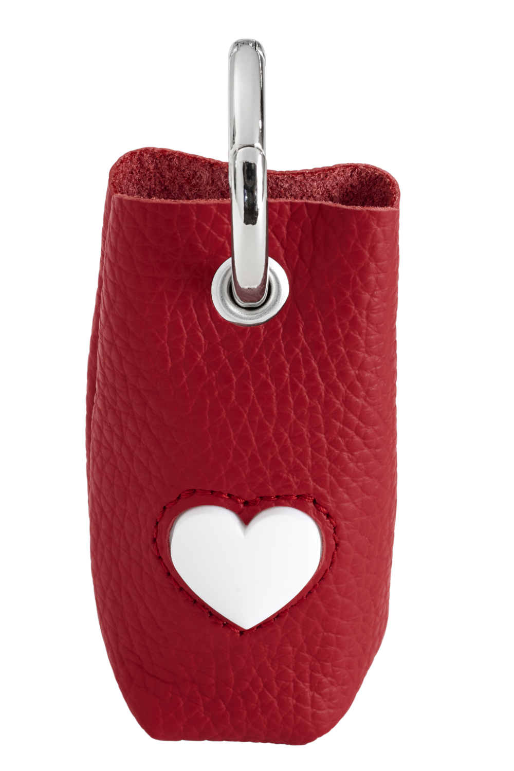 Ausgestattet mit einem stabilen Ringkarabiner kann der Spender mühelos an Leine, Tasche oder Gürtel befestigt werden und ist so stets schnell zur Hand. Die leuchtend rote Farbgebung, kombiniert mit dem handgenähten weißen Herz, verleiht dem Kotbeutelspender eine besondere Ausstrahlung und setzt modische Akzente. Über den praktischen Auslass lassen sich die Beutel bequem entnehmen und sauber abreißen.