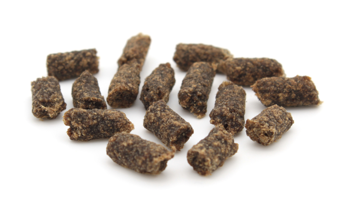 Unsere leicht soften Lammfleisch Minis haben einen Durchmesser von ca. 0,7 cm und eine Länge von ca. 1,2 cm.